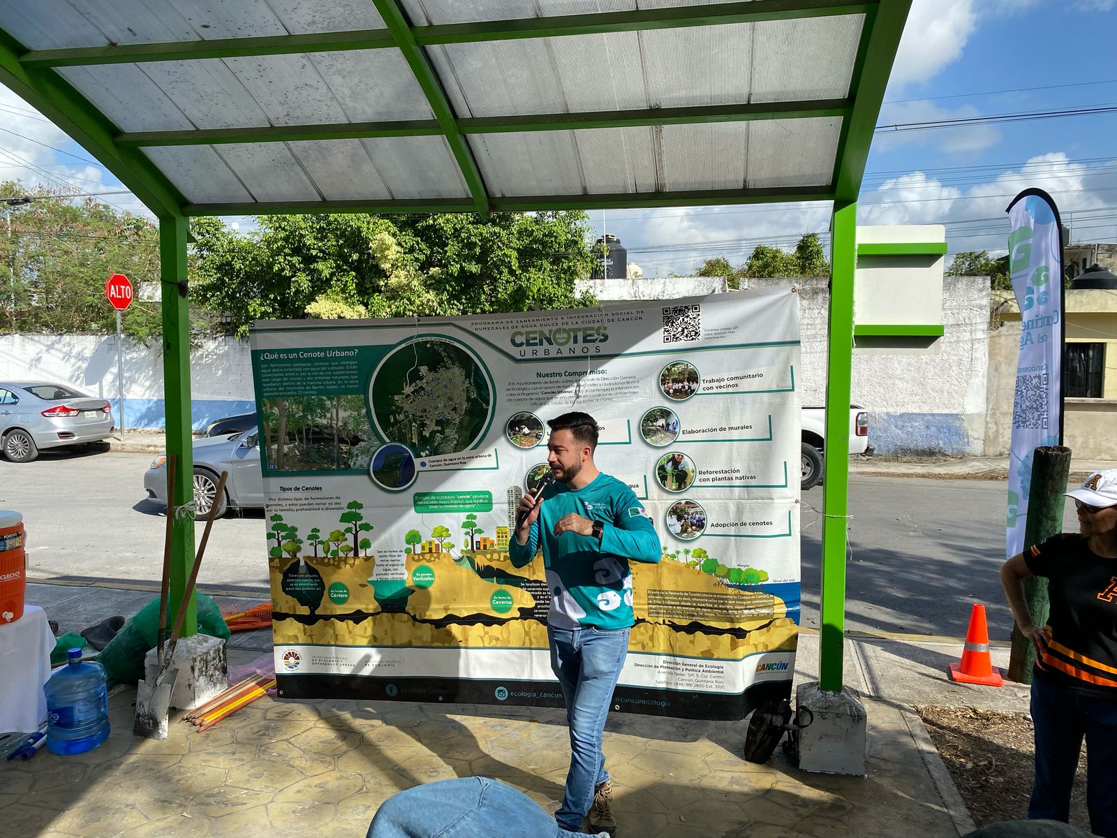 La limpieza inició con una plática de sensibilización en donde el Director General de Centinelas del Agua, explicó a los presentes las características del suelo kárstico, el proceso del ciclo del agua y la importancia de evitar que residuos y desechos lleguen a los cuerpos de agua para evitar la contaminación de los recursos hídricos.